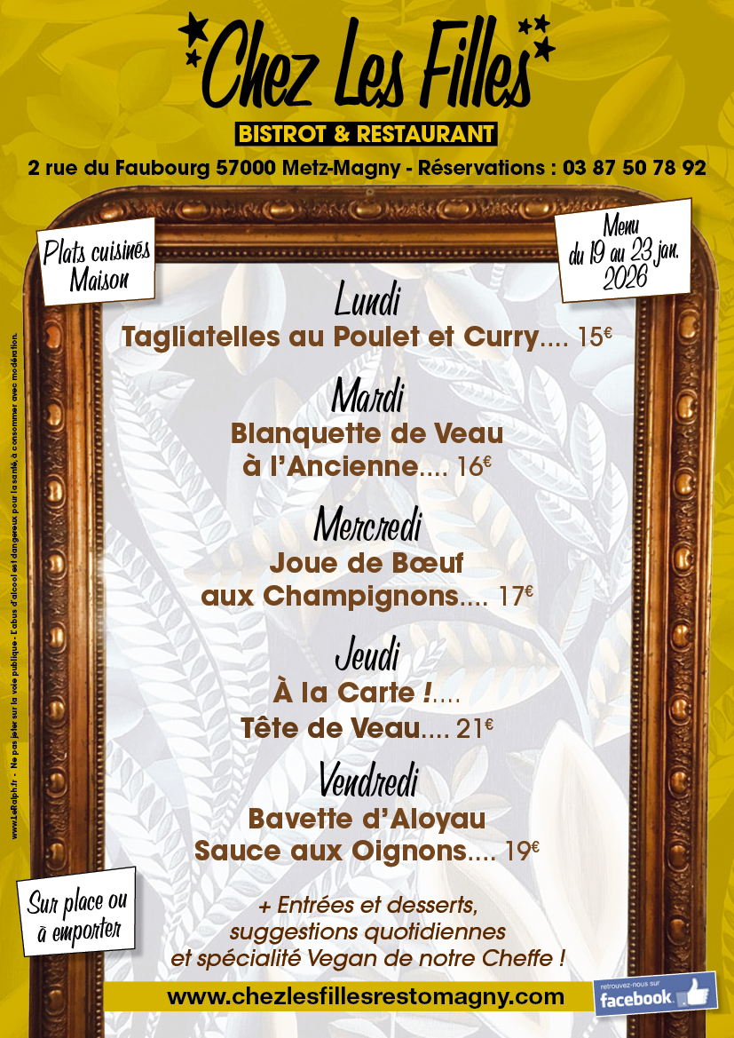 Réservations de 09h00 à 11h30 au 03 87 50 78 92