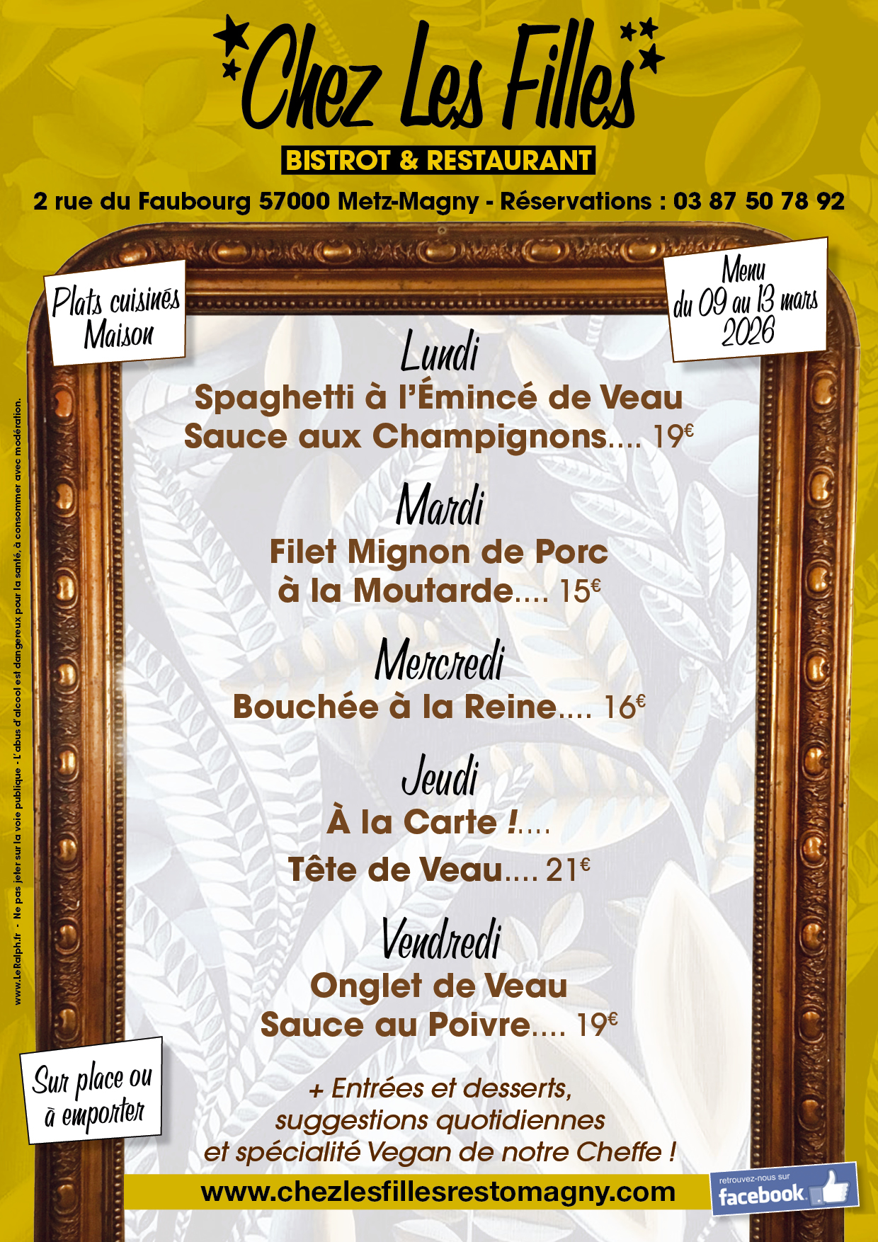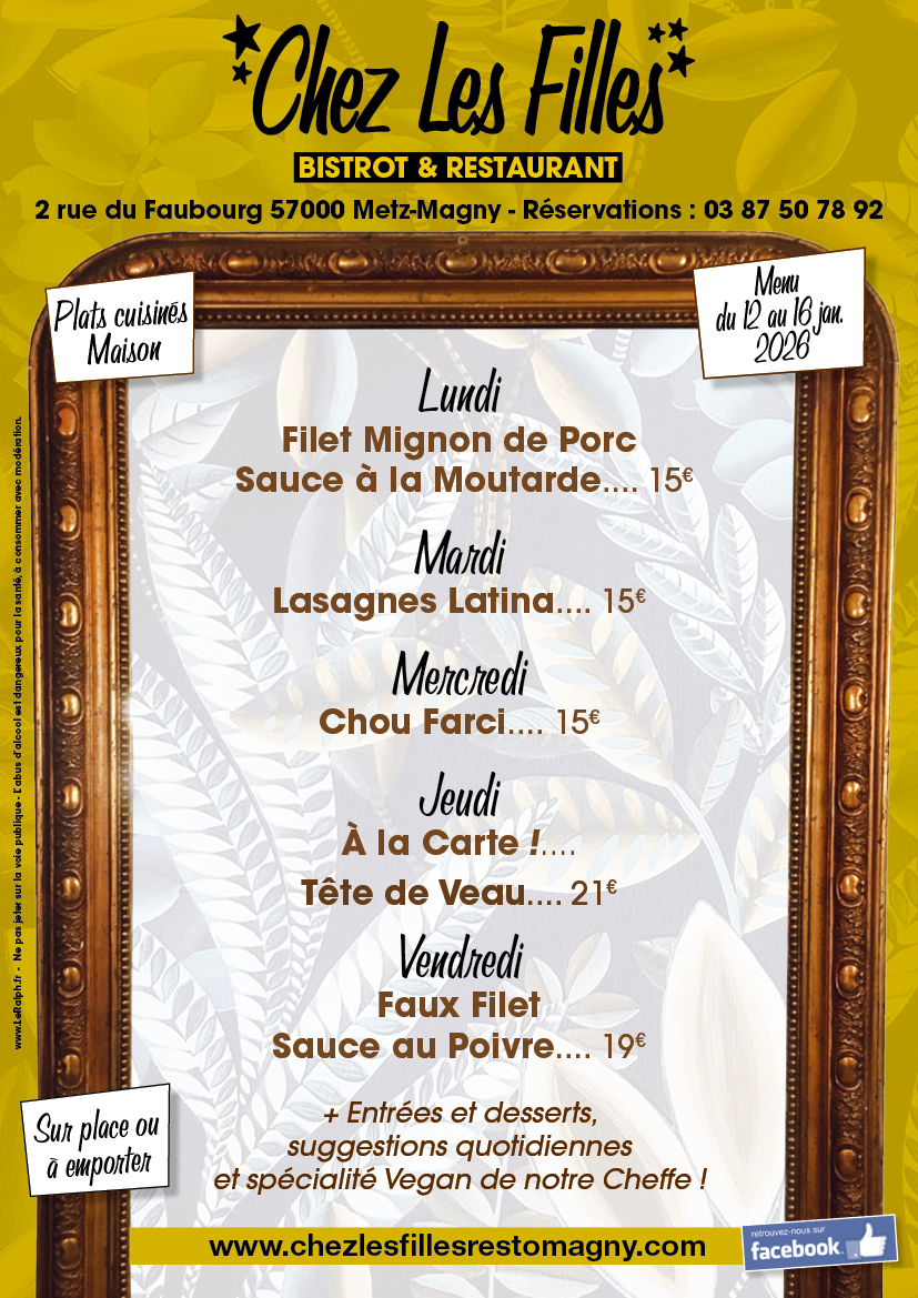 Réservations de 09h00 à 11h30 au 03 87 50 78 92